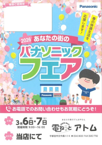 電ねっとアトムでは、「あなたの街のパナソニックフェア」を開催します。